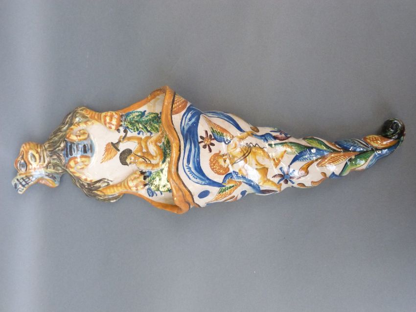 Cantagalli wall pocket decorated with cherubs, length 47cm