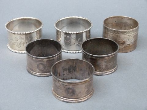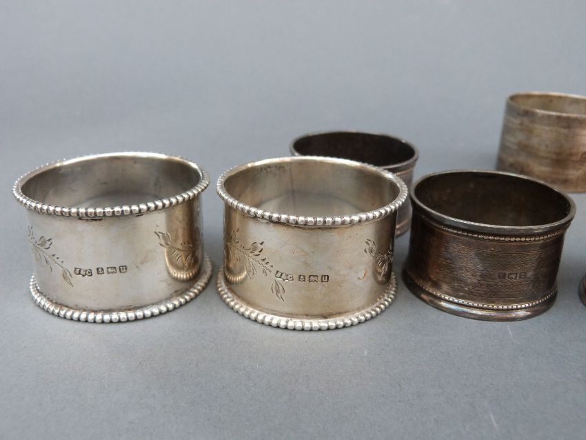 Six various hallmarked silver napkin rings, weight 156g