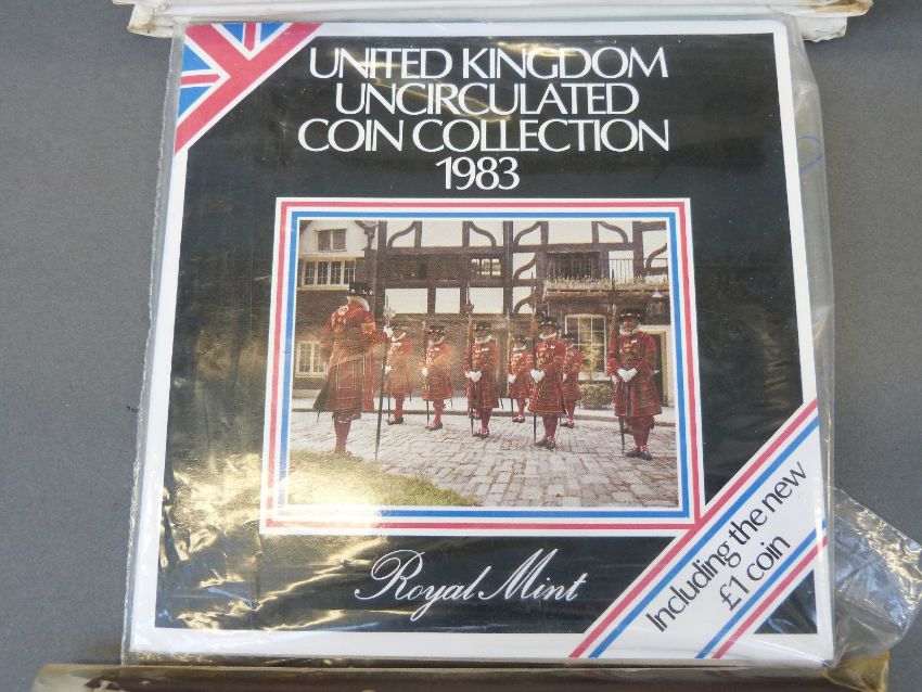 Coinage of Great Britain and Northern Ireland Royal Mint brilliant uncirculated sets 1970, 1972-1975, eleven sets in all, together with 1983 and 1987 examples