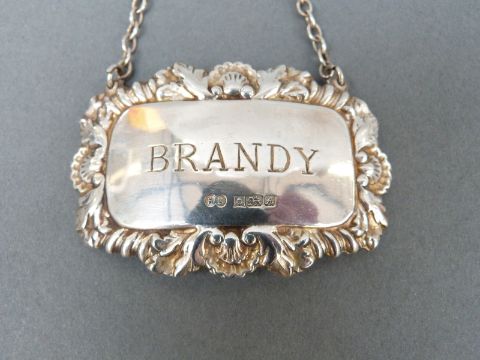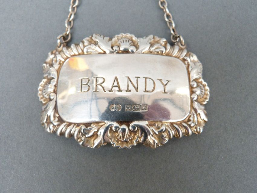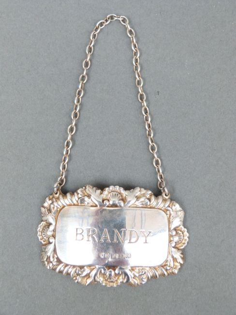 A modern hallmarked silver brandy bottle ticket or label, weight 14g