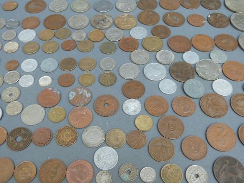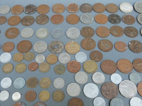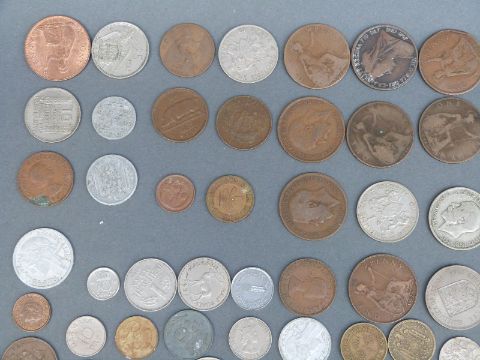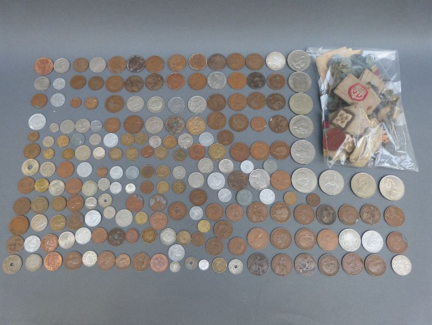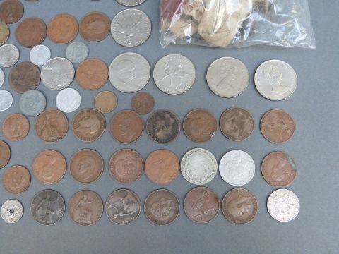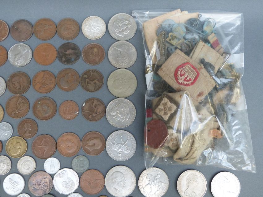 A small quantity of coins, military buttons and badges