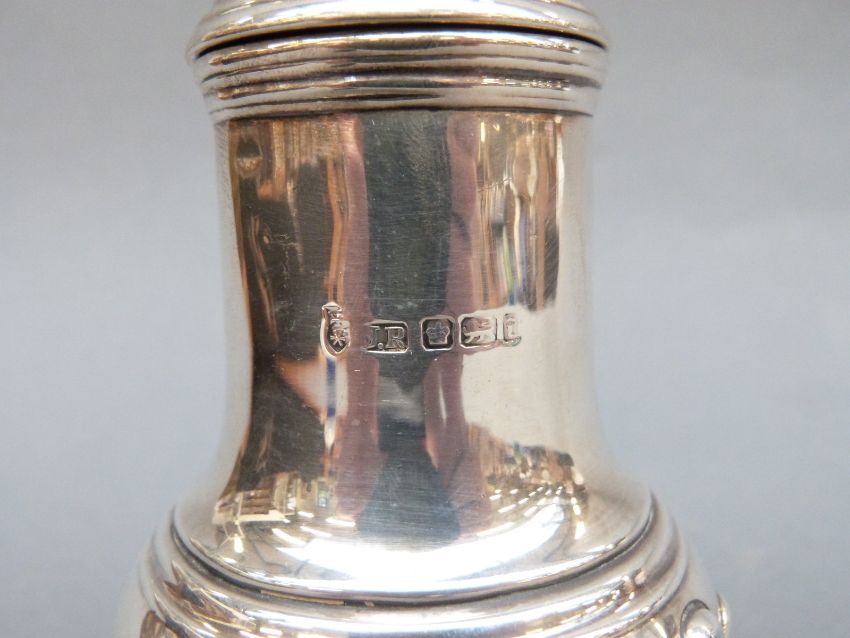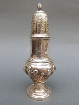 An Edward VII hallmarked silver sugar caster with wrythen lower body, Sheffield 1901 maker Joseph Rodgers, height 20.5cm, weight 205g