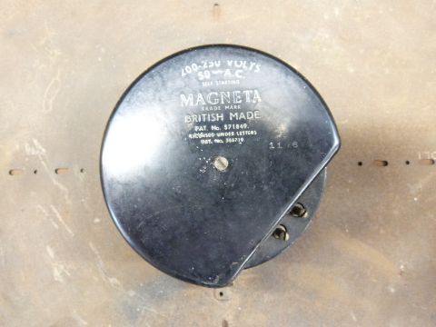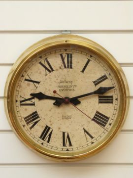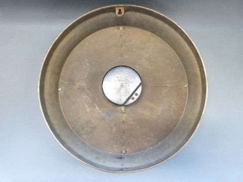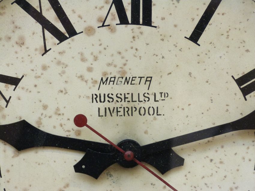 A Magneta brass cased wall clock with electric movement, diameter 37cm, Russells Ltd, Liverpool to dial
