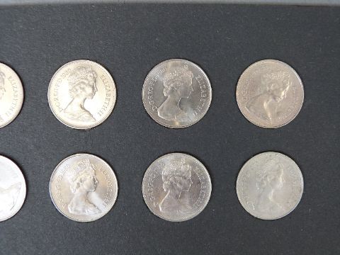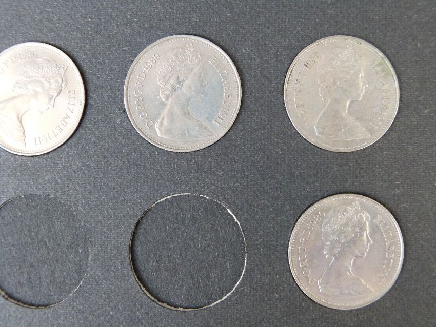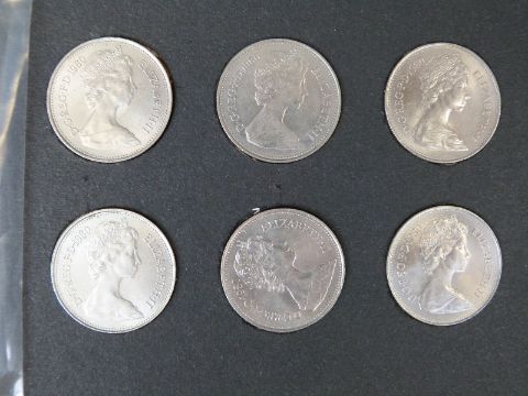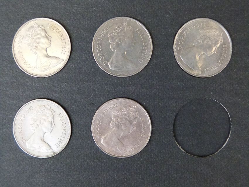 An amateur collection of early UK decimal 5 pence coins, all mounted in cards 1974-1980, approximately 400 coins in all, EF - UNC condition