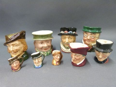 Royal Doulton character jugs, Royal Crown Derby paperweights etc