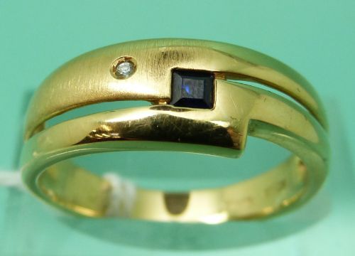 An 18ct gold ring set with a square sapphire, weight 4.48g