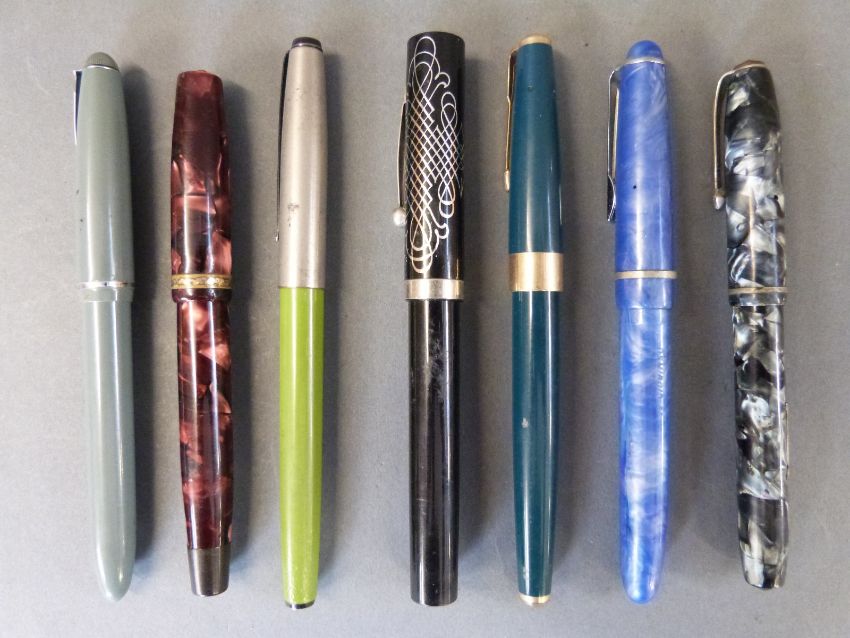 A quantity of pens to include Conway Stewart 12 and 75, Parker 17, Osmiroid 65, Summit S.125, Parker Challenger, Sheaffer and Platignum