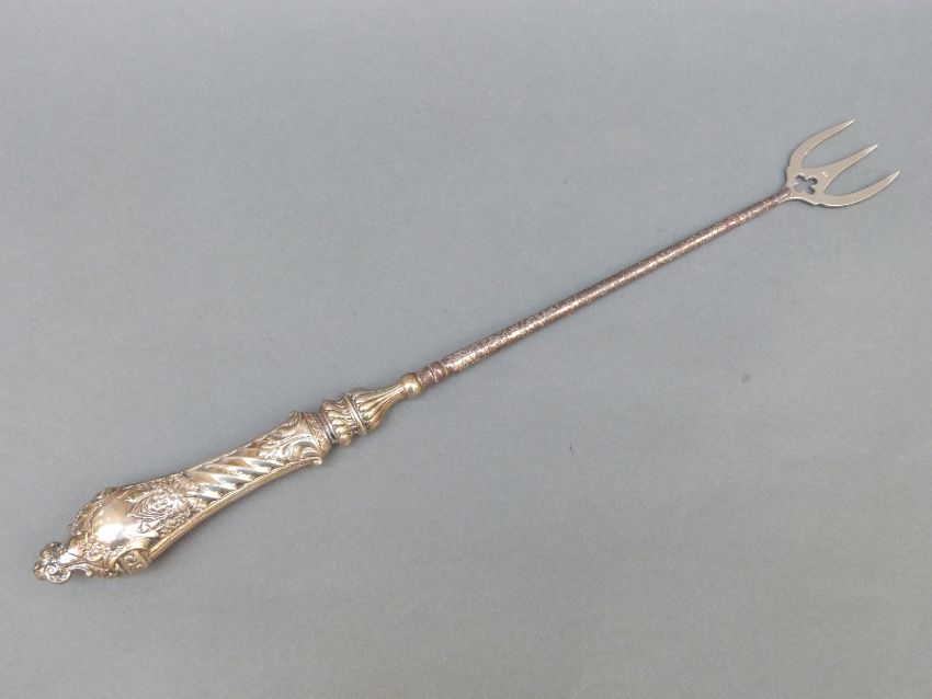A Victorian hallmarked silver handled toasting fork, Birmingham 1890, maker Adie & Lovekin Ltd