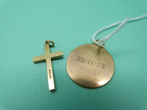 A 9ct gold St Christopher and a 9ct gold cross pendant (8.6g)