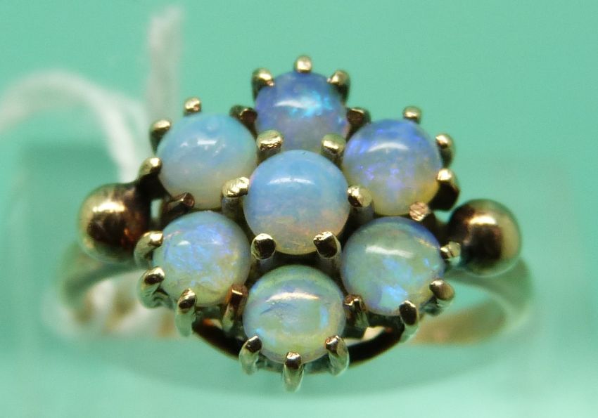 A 9ct gold ring set with a cluster of opals (size L)