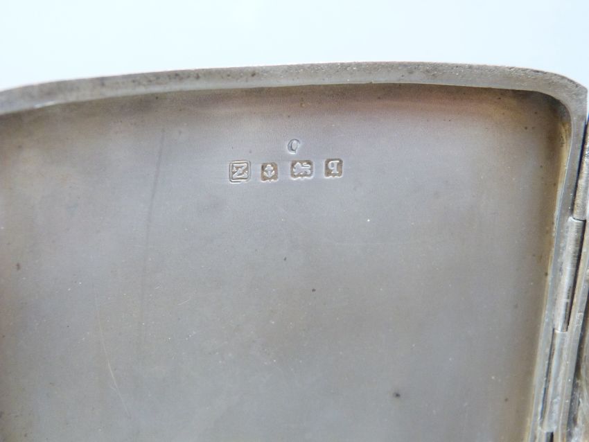 A hallmarked silver cigarette case, napkin ring and spoon, weight 128g