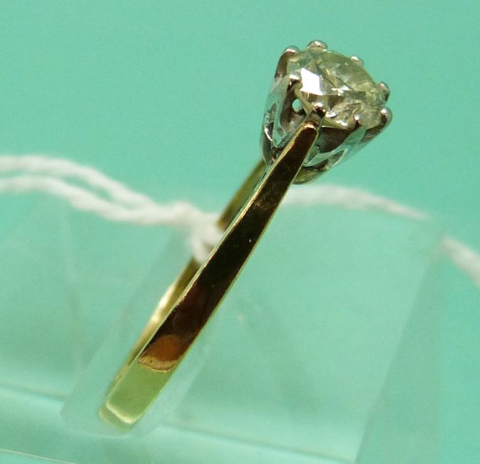 An 18ct gold ring set with round brilliant cut diamond of approximately 0.5ct (size L)