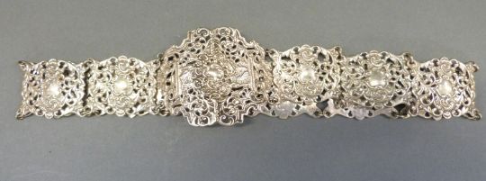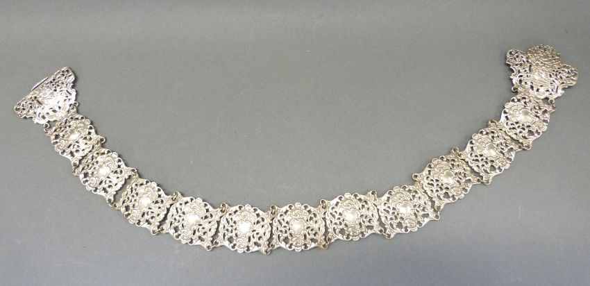 An ornate late 19th/early 20thC plated nurse's or similar belt, weight of silver and white metal 78g