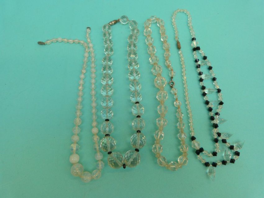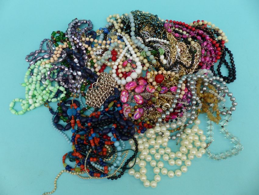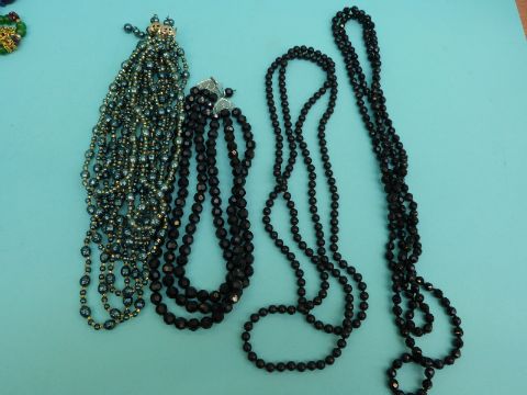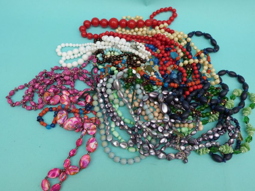 A collection of beaded necklaces to include glass beads, jet beads etc