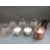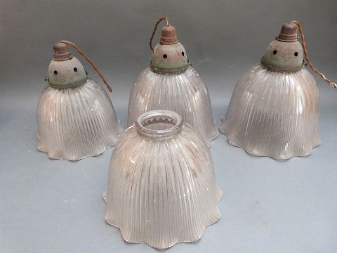 Four glass lights, two large and two small, together with a copper kettle, Queen Victoria commemorative mug and Copeland lidded pots