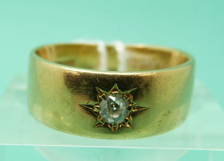 An 18ct gold ring set with an old cut diamond in a star setting, Chester 1912 (size M), weight 5.67g