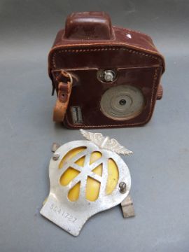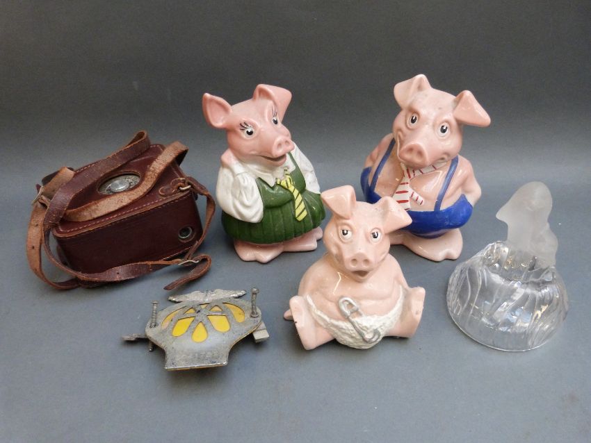 A quantity of colleactables including NatWest pigs, AA badge, cine cameras etc