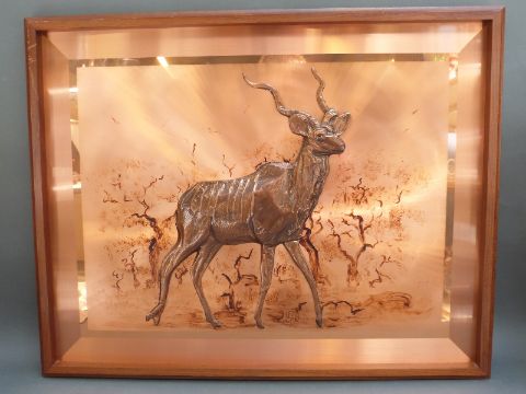A large retro African copper relief picture of an Eland, 54 x 70cm