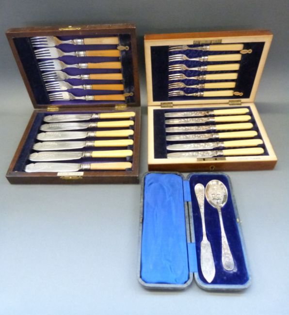 Mappin Brothers plated table lamp, cased cutlery sets, tea set, and coins including pre-1947 etc