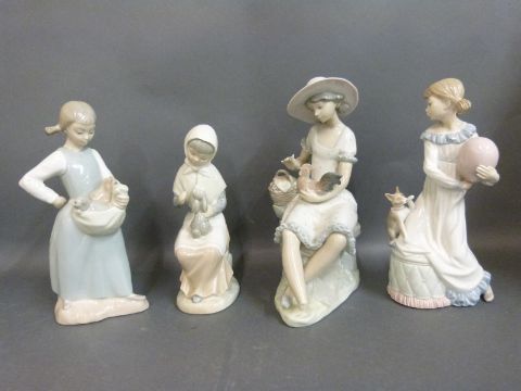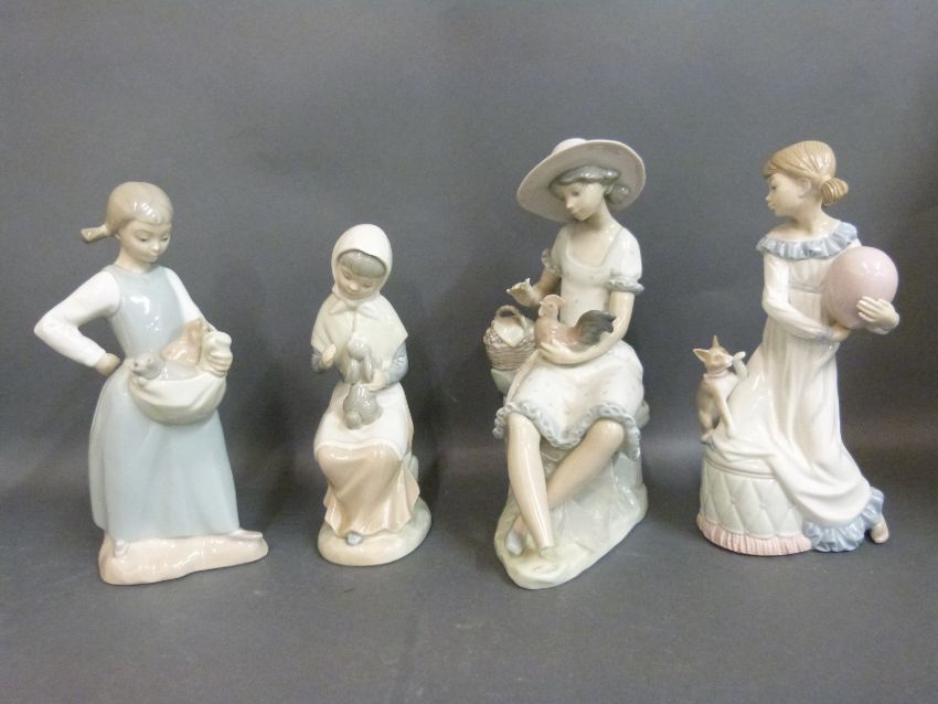 A collection of Nao figures each holding or with animals or birds
