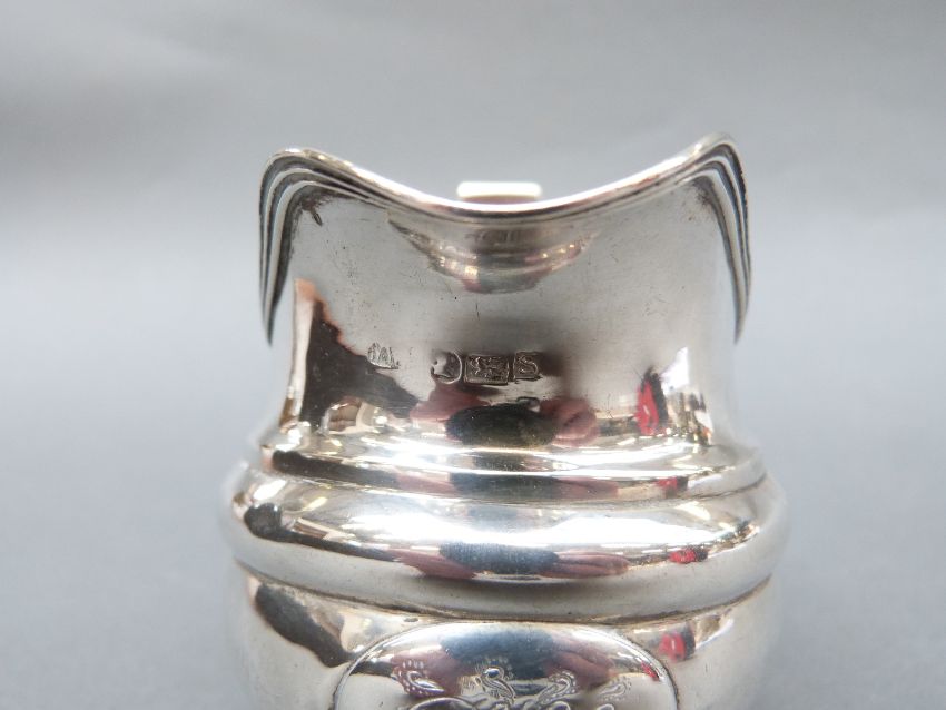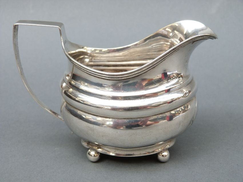 A Georgian hallmarked silver cream jug raised on four ball feet, London 1813, maker William Weston, length 13cm, weight 100g
