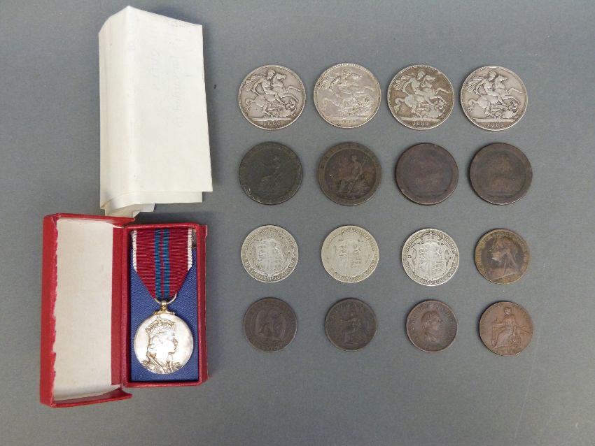 Four Victorian crowns, further coinage and a coronation medal
