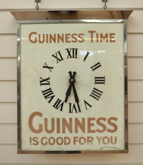 A vintage 'Guinness Time' glass and chrome advertising clock, height 56cm