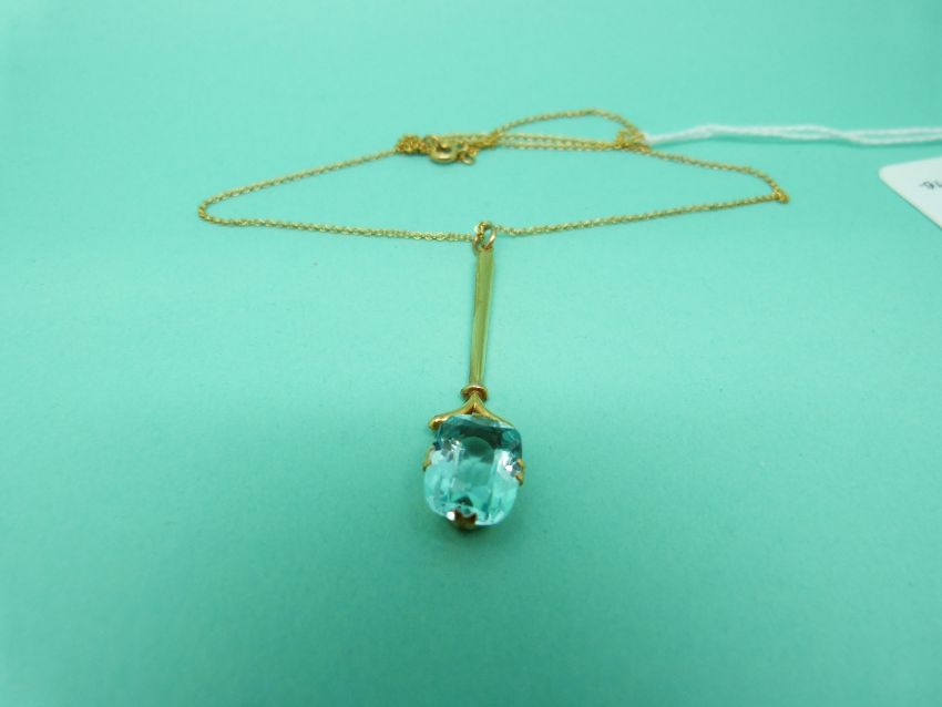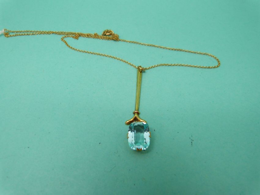 A 9ct gold pendant and chain set with a blue stone possibly topaz.