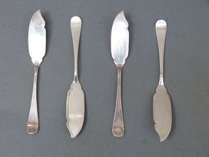 Four various hallmarked silver butter knives, Sheffield 1895, 1896 and two 1897, length 11.5cm, weight 55g