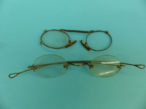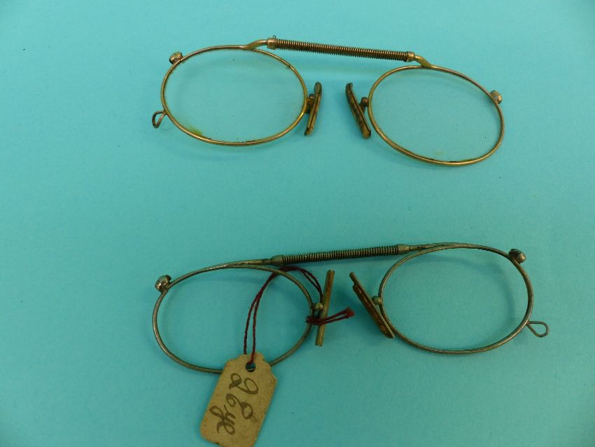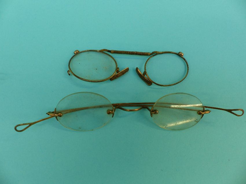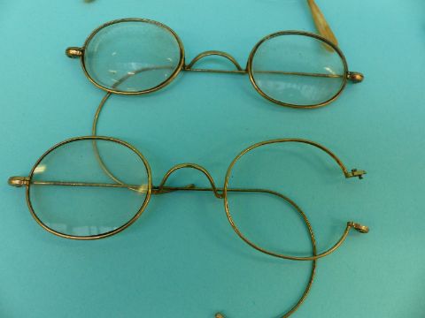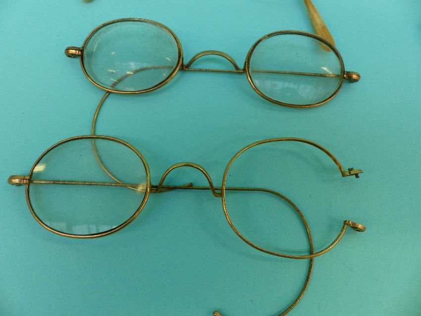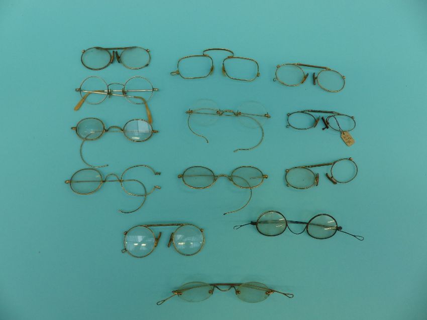 A collection of early spectacles/glasses including gold plated, Georgian, Victorian, gold, engraved silver etc