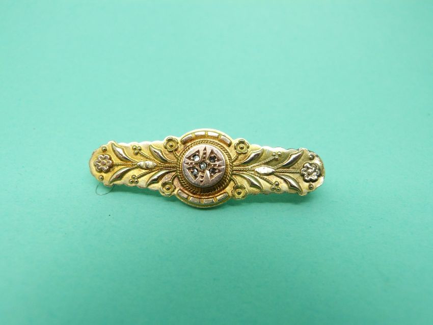 A 9ct gold brooch set with diamonds (Chester 1900)