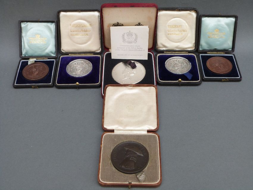 Six medallions including silver