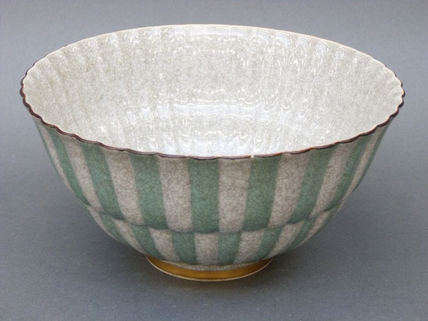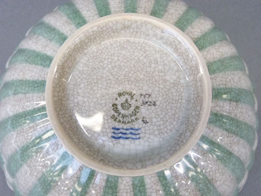 Royal Copenhagen crackle glazed faience pedestal bowl, diameter 20cm