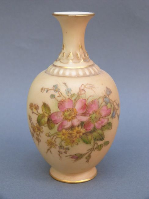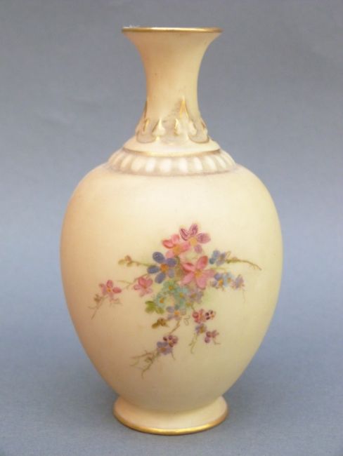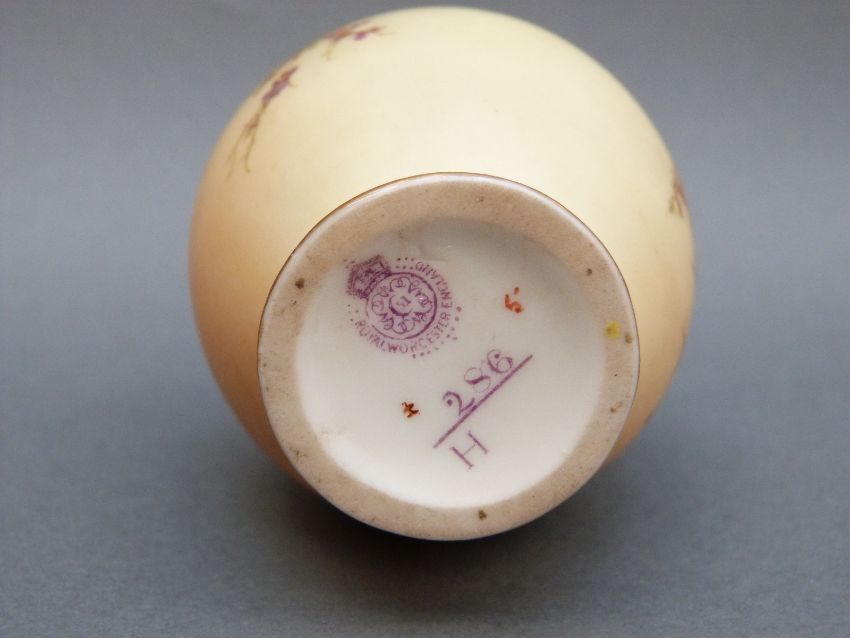 Royal Worcester blush ivory pedestal vase, shape H286, 11cm tall