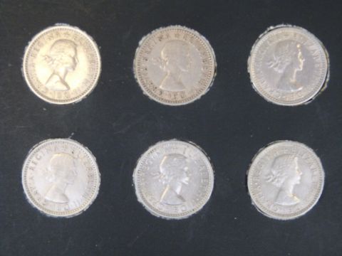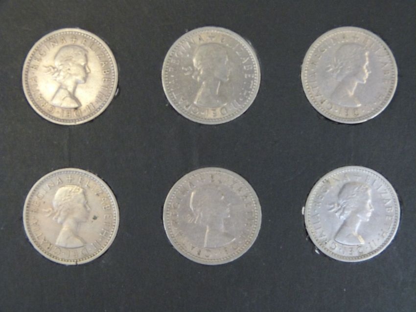 An amateur collection of English sixpences ranging from 1963-1967, approximately 300 coins in all VF+, all mounted in cards and contained in a collectors boxes