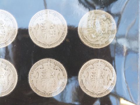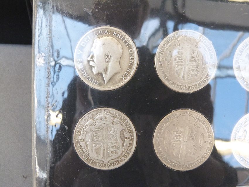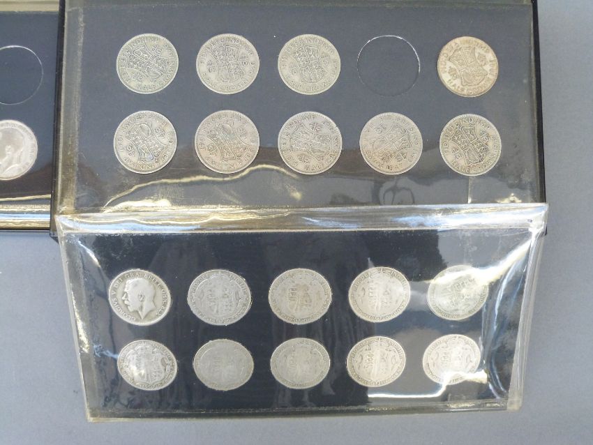 An amateur collection of pre 1947 English half crowns, estimated weight approximately 1000g, mounted in cards, 80 coins in all (includes five 1947 examples)
