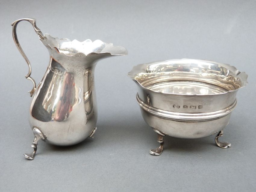 A George V hallmarked silver sugar bowl, B'ham 1910, together with a similar style hallmarked silver cream jug, weight of both 139g
