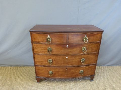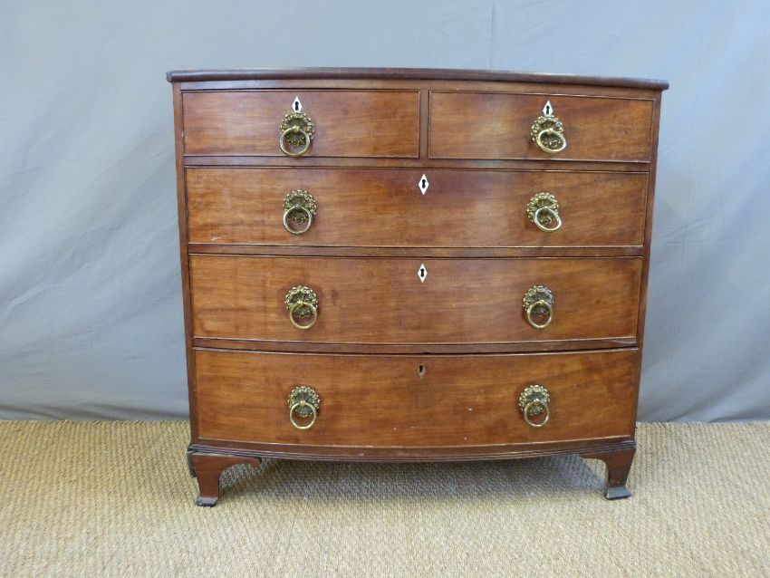 A 19thC mahogany bow front chest of two over three drawers (W114 x D56 x H104cm)