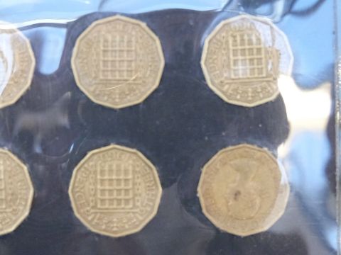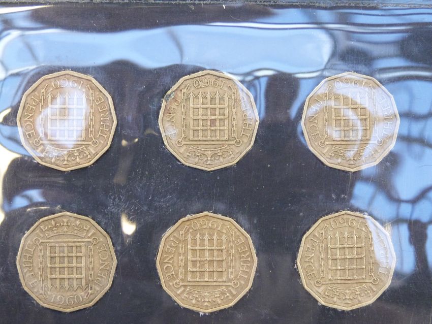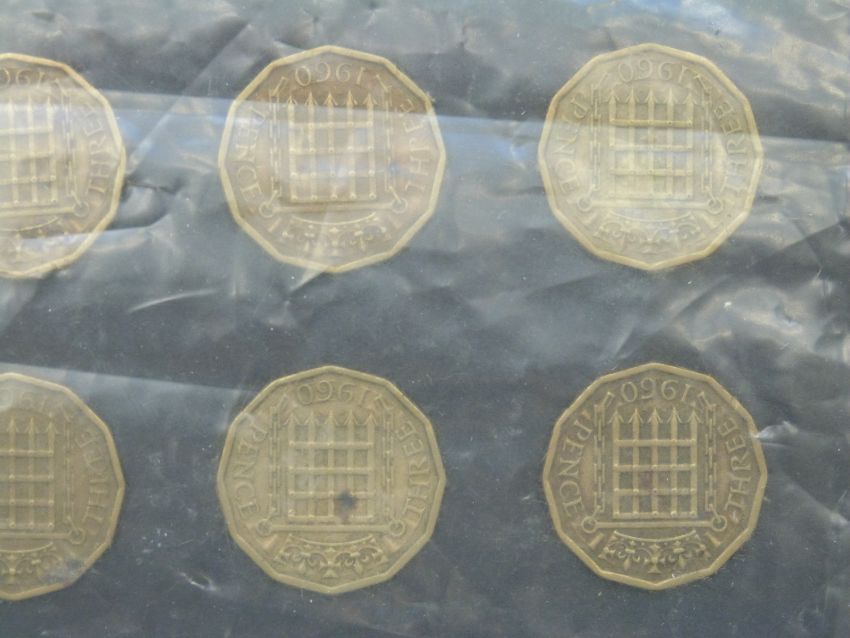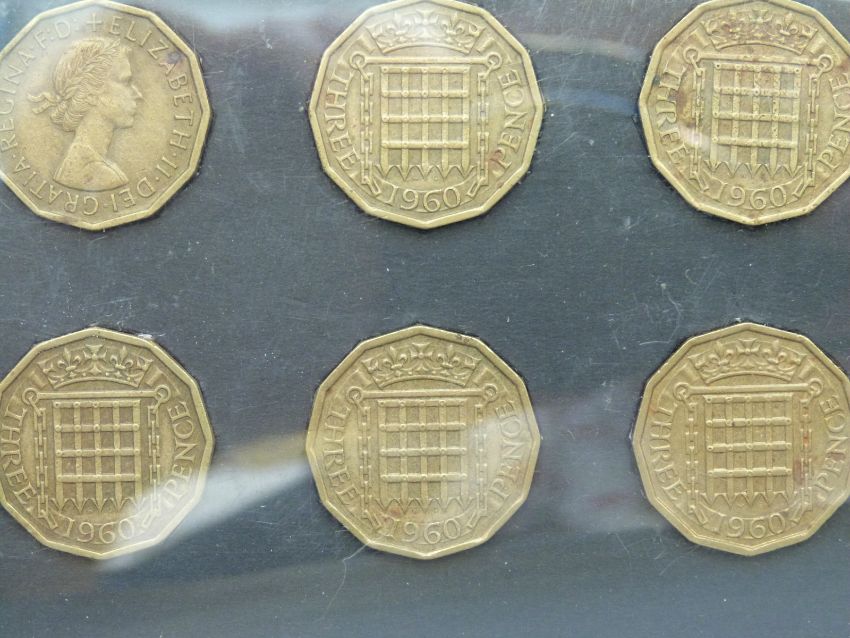 An amateur collection of English dodecagonal three penny pieces mounted on cards, 1941-1961, various grades together with approximately 30 silver 3d Victoria onwards, includes Australia examples, approximately 500 coins