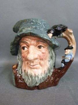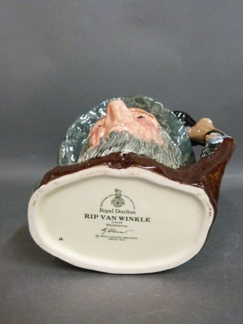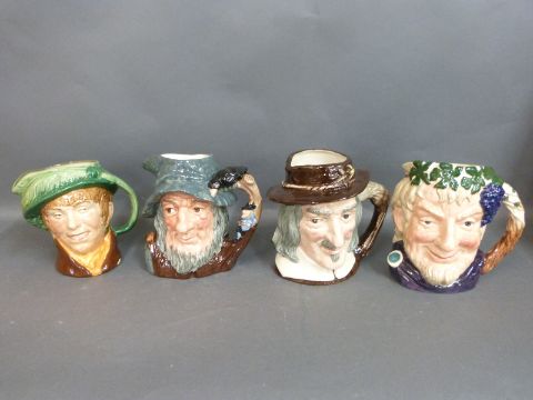 Four large Royal Doulton character jugs 'arriet, Rip Van Winkle, Bacchus and Isaac Walton