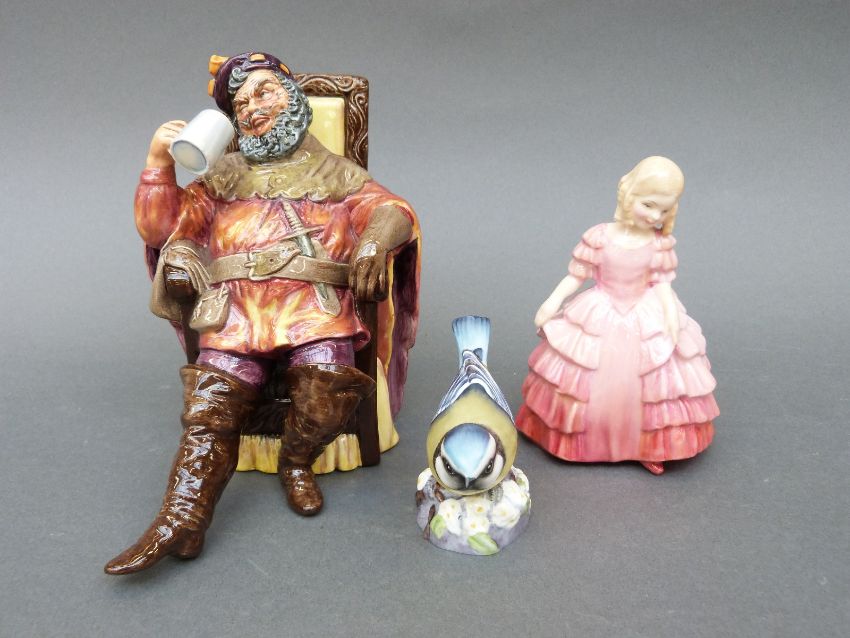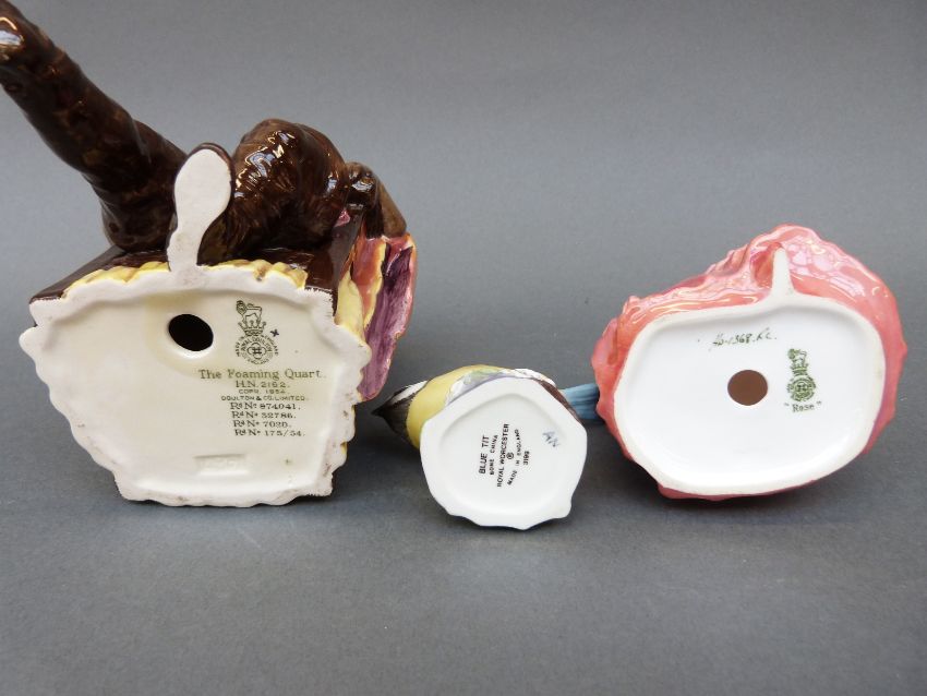 Royal Doulton figure The Foaming Quart HN 2162, Royal Doulton figure Rose HN 1368 and a Royal Worcester blue tit