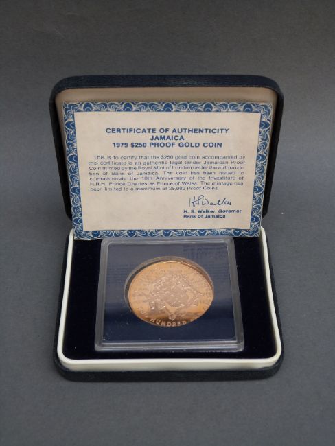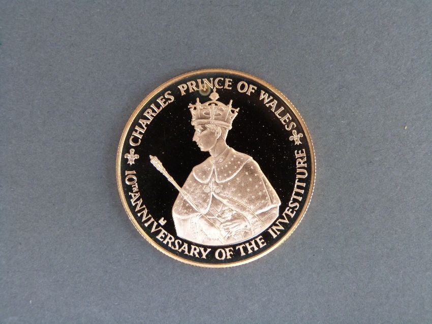 A 10th Anniversary Investiture of Prince Charles 1969-1979 $250 gold proof coin, cased with certificate, 40mm diameter, 42.8g