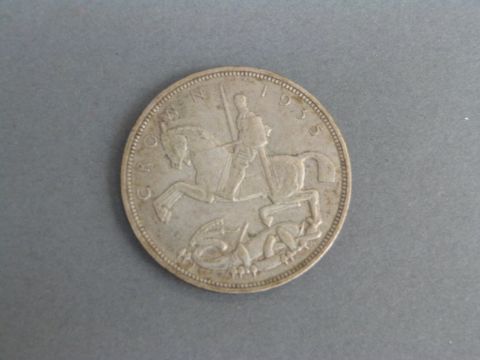 A 1935 George V 'rocking horse' crown together with a Festival of Britain 1951 example