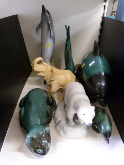 A collection of ceramic animals including Blue Mountain and Dux