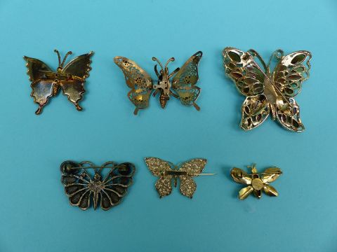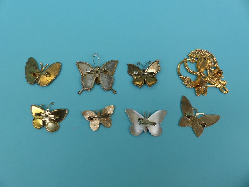 A collection of butterfly brooches to include enamel set, K and T, Monet, dual etc