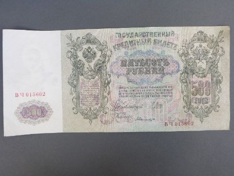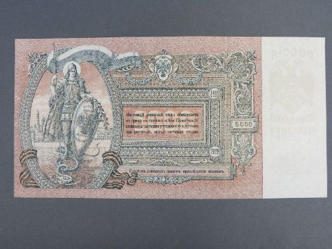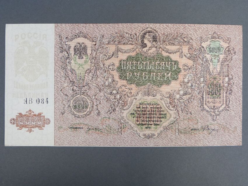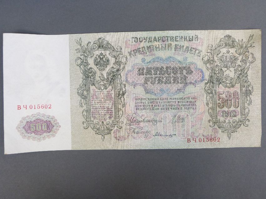 Russian bank notes comprising a 5000 Ruble note of 1919 HB084 and a 500 Ruble example of 1912, both near uncirculated, together with two 'Disney Dollars' and a 'school boy' stamp collection in an album including late 19thC USA, Victorian, and other world examples