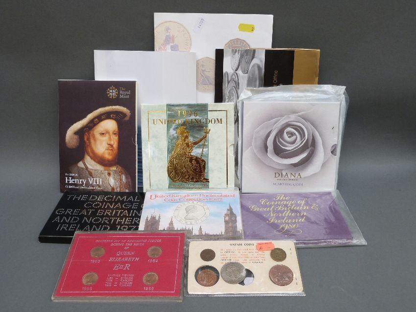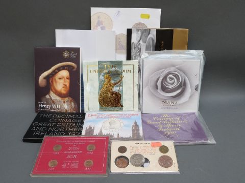 A collection of brilliant uncirculated UK coin sets, crowns etc