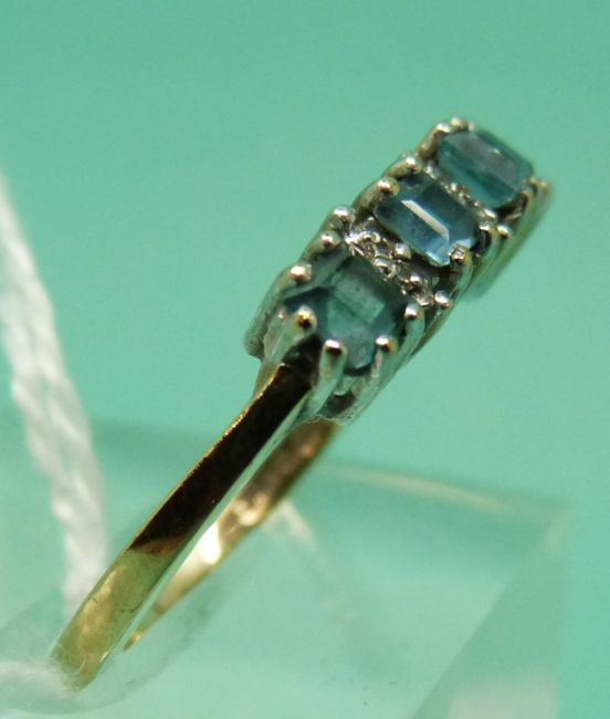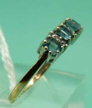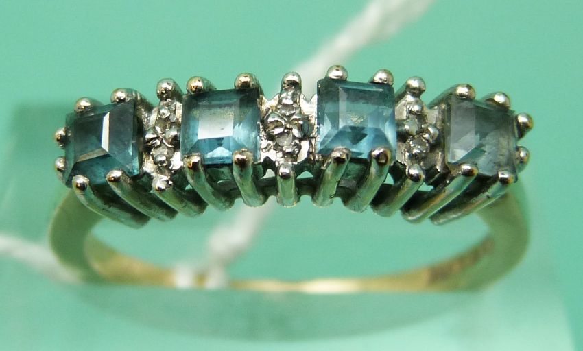 A 9ct gold ring set with square topaz and diamonds (size N)