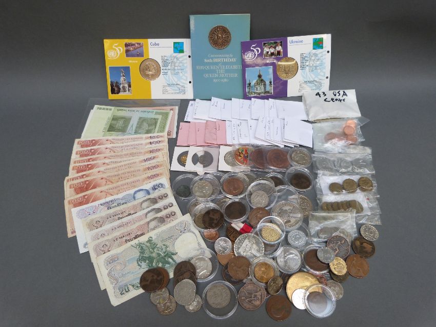 An amateur collection of coinage to include UK and overseas examples, restrike specimen examples modern crowns, some USA silver, Roman Bronze etc