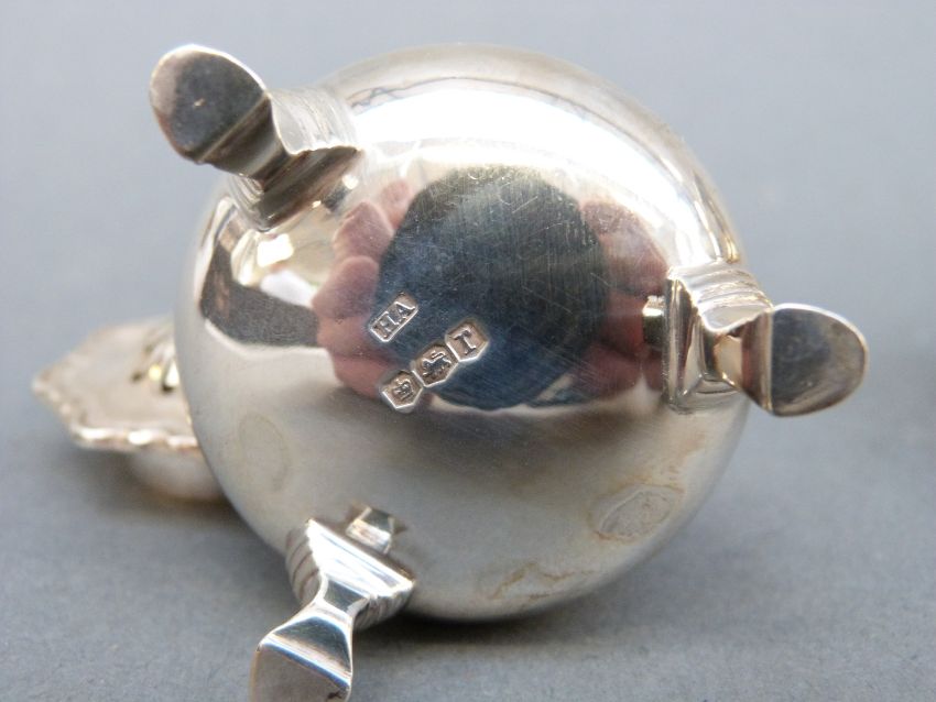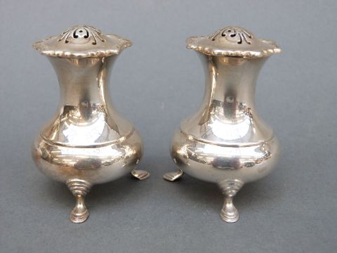 A pair of George V hallmarked silver peppers raised on three feet, Sheffield 1934, maker Atkin Brothers, height 6cm, weight 107g